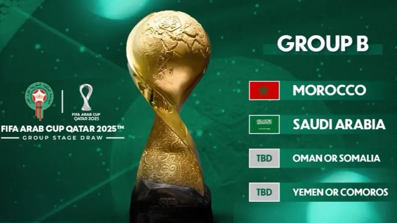 - المجموعة الثانية: المغرب، السعودية، الفائز من عمان/الصومال، الفائز من جزر القمر/اليمن.