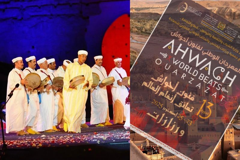 تستعد مدينة ورزازات، ما بين 23 و25 أكتوبر 2025، لاحتضان الدورة الثالثة عشرة من المهرجان الوطني لفنون أحواش، تحت الرعاية السامية لصاحب الجلالة الملك محمد السادس نصره الله، بتنظيم من وزارة الشباب والثقافة والتواصل – قطاع الثقافة – بشراكة مع جمعية “ورزازات إيفنتس”، وبدعم من عمالة الإقليم ومؤسسات وطنية وجهوية.