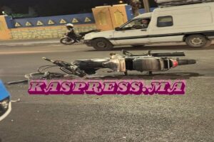 شهد شارع الولاء بمدينة الداخلة قبل لحظات حادثة سير خطيرة، بعدما اصطدمت سيارة صغيرة من نوع فولكسفاكن بدراجة نارية يقودها شاب بسرعة مفرطة.