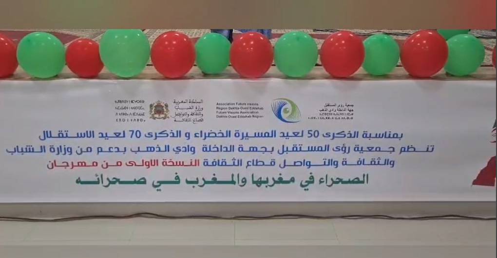 في لحظة مشحونة بالرمزية الوطنية، تطلق جمعية رؤى المستقبل بجهة الداخلة وادي الذهب النسخة الجديدة من مهرجان “الصحراء في مغربها… والمغرب في صحرائه”، احتفاءً بذكريين مفصليتين في تاريخ المملكة: الخمسينية المجيدة للمسيرة الخضراء والسبعين عامًا على الاستقلال.